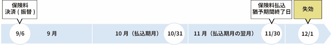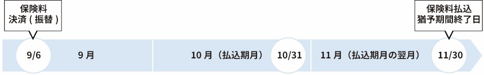 ※例えば、払込期月が10月の場合、契約日が月の1日の場合も月の31日の場合も保険料の払込猶予期間は11月末日となります。
