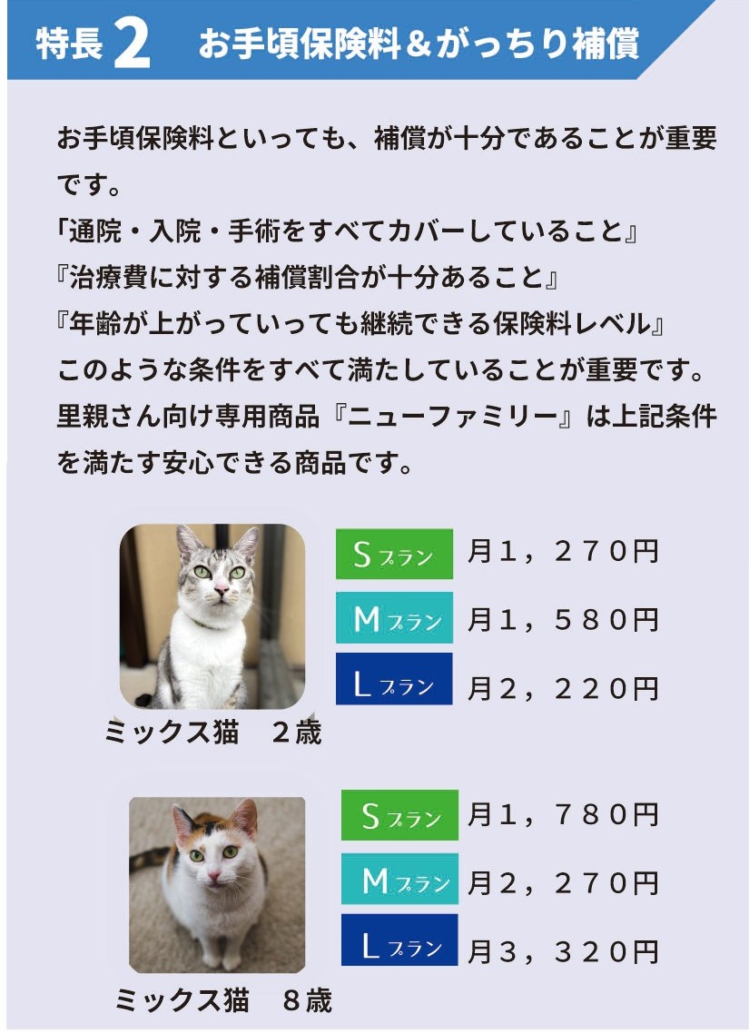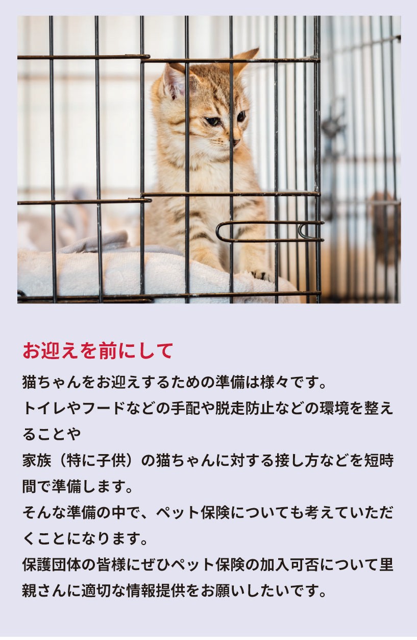 ペットを里親として迎える方向けのペット保険です。新しい家族の一員として、愛情と責任を持って大切に育てていきましょう。