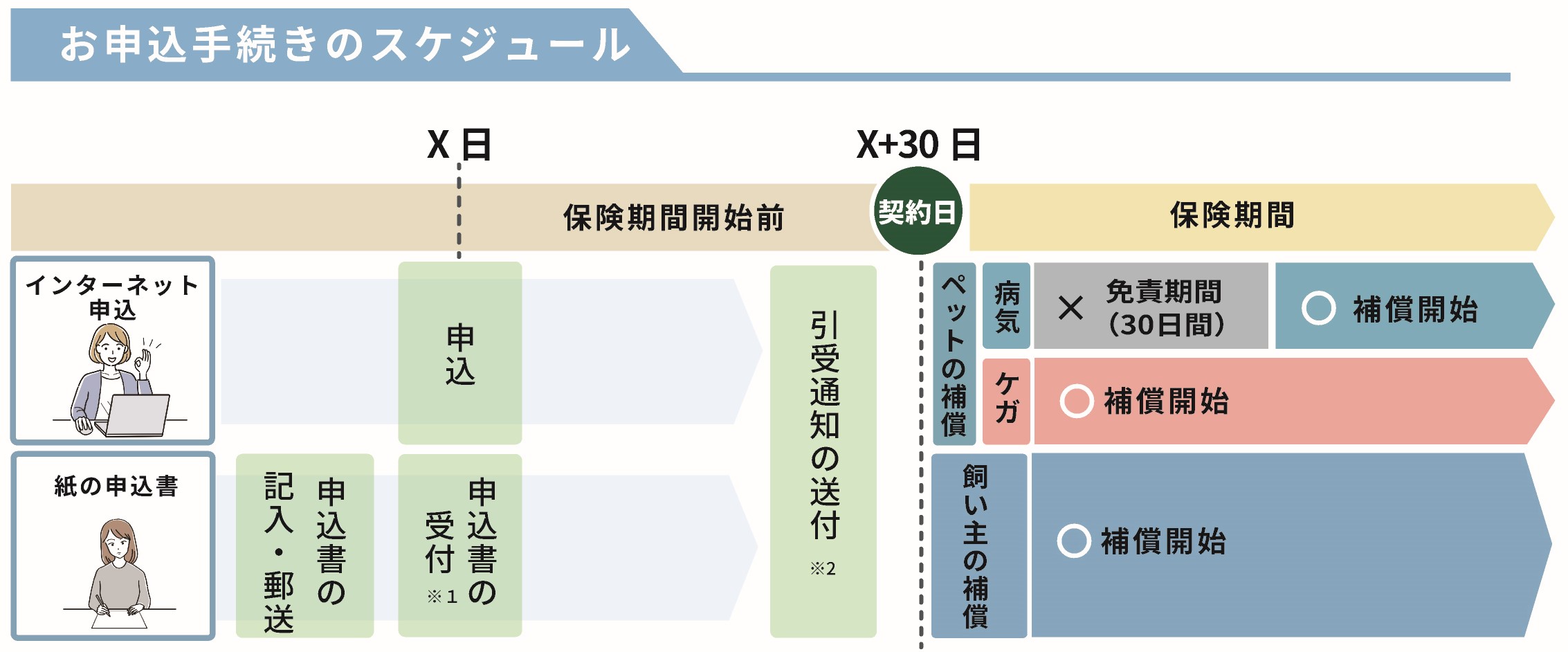 ※2 申込内容の審査の結果、お引き受けできない場合やお引き受けに条件がある場合には、その旨の通知を送付します。(インターネット申込の場合、メールでの通知になります。)