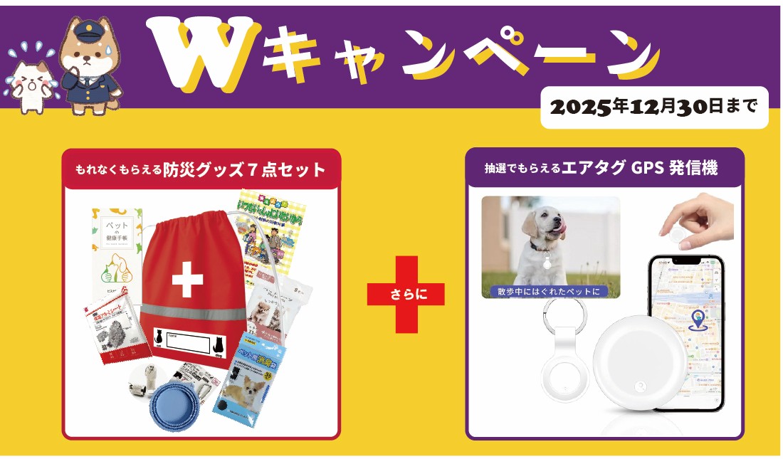 対象期間中に「たくす」を申込頂き、対象条件を満たす方全員に A「防災グッズ7点セット」をプレゼント さらに抽選でB「エアタグGPS発信機」をプレゼント